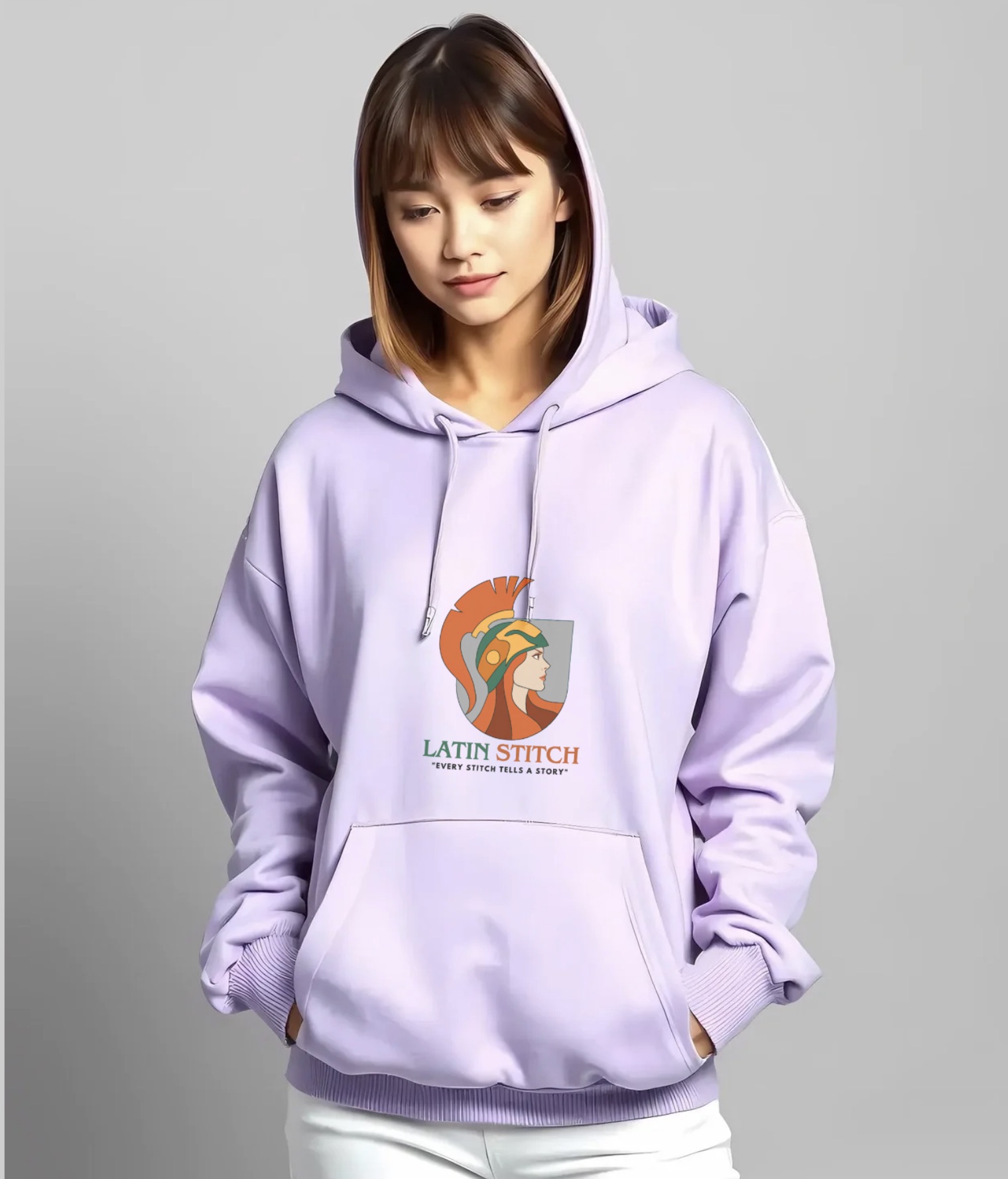 BRAND LATIN STITCH – Super Premium Fabric Women’s Cotton Hoodie – Printed, Double Bio-wash T-shirt.