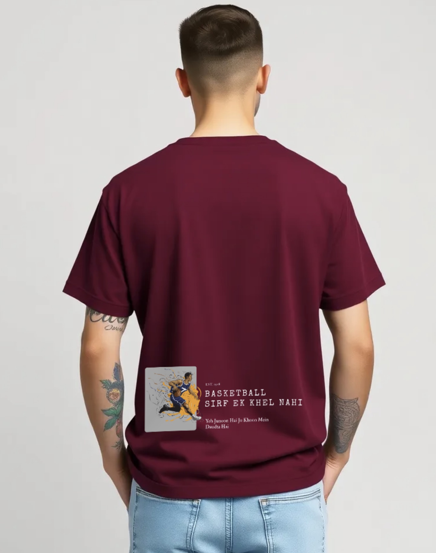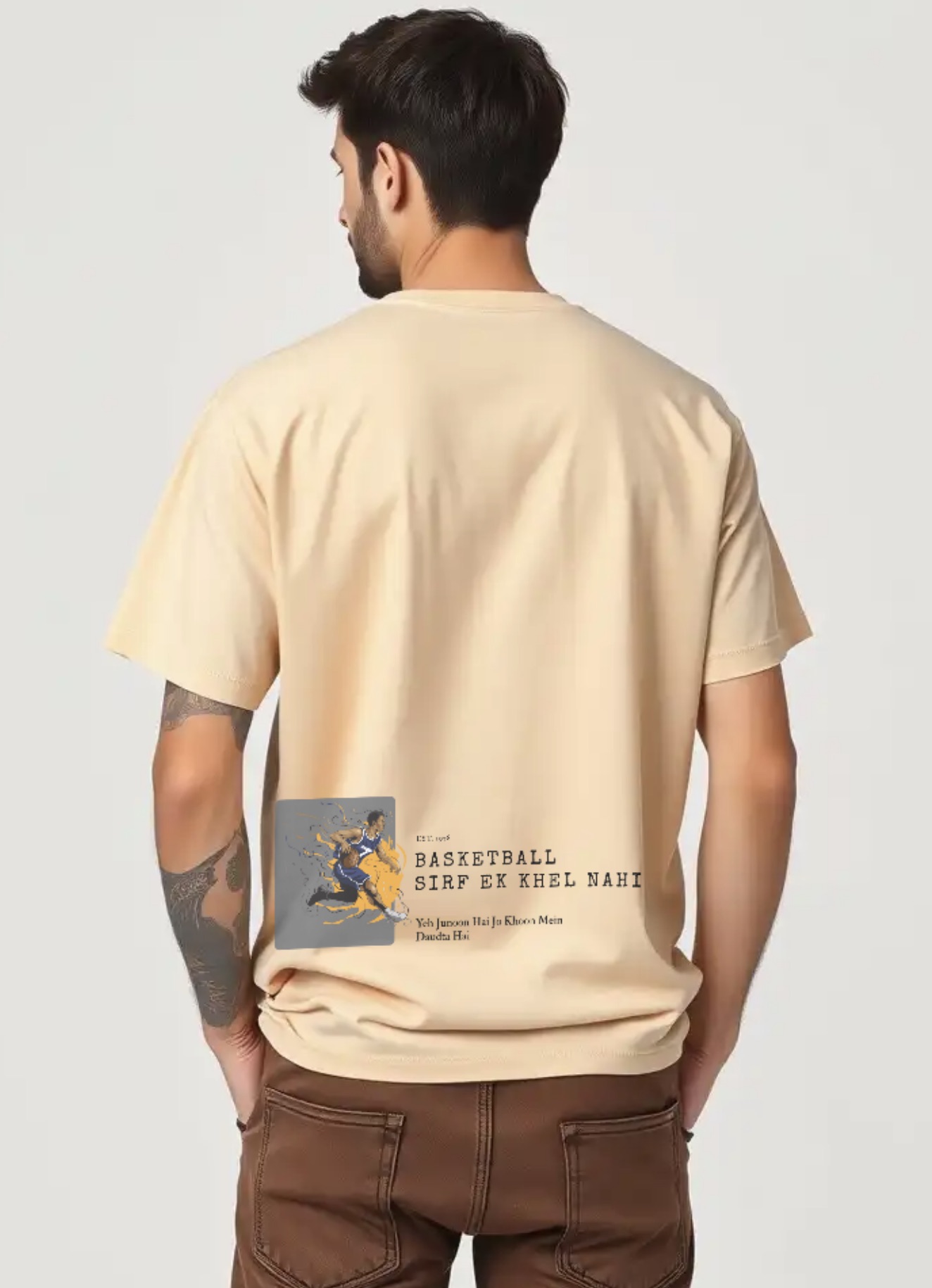 Basket Ball – Super Premium 240 GSM French Terry Fabric Men’s Cotton Oversize T-Shirt – Printed, Double Bio-wash T-shirt.