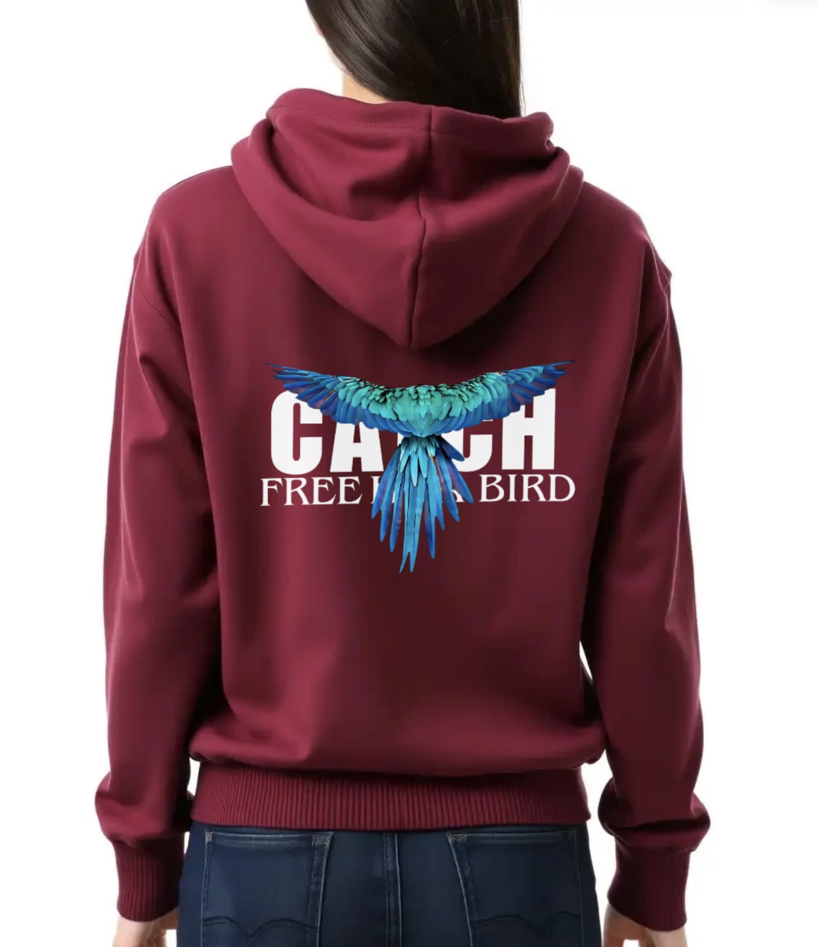 Catch Bird – Super Premium Fabric Women’s Cotton Hoodie – Printed, Double Bio-wash T-shirt.