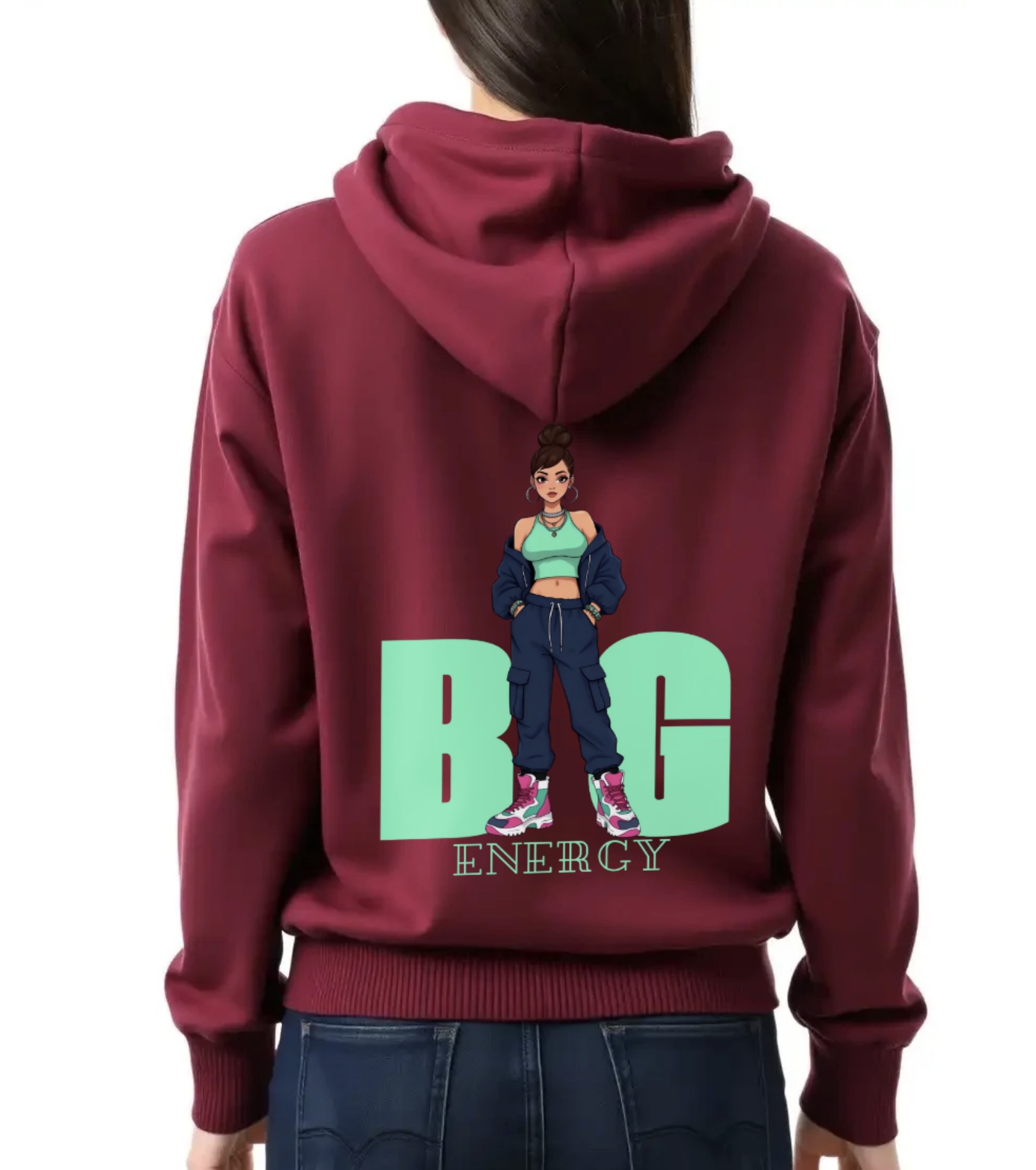 Big Energy – Super Premium Fabric Women’s Cotton Hoodie – Printed, Double Bio-wash T-shirt.