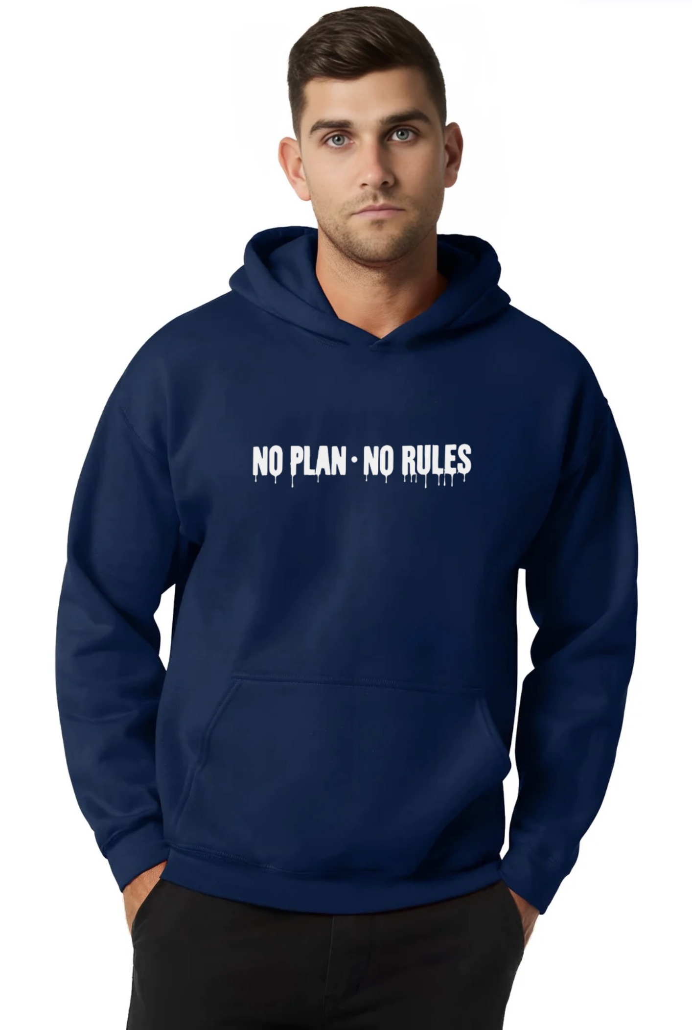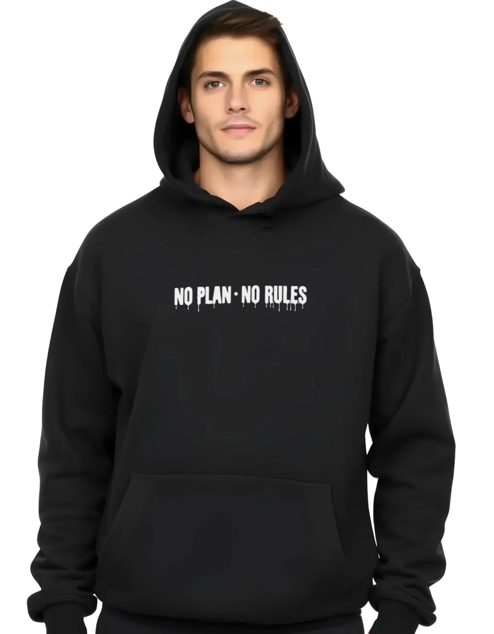 No Plan No Rules – Super Premium Fabric Men’s Cotton Hoodie – Printed, Double Bio-wash T-shirt.