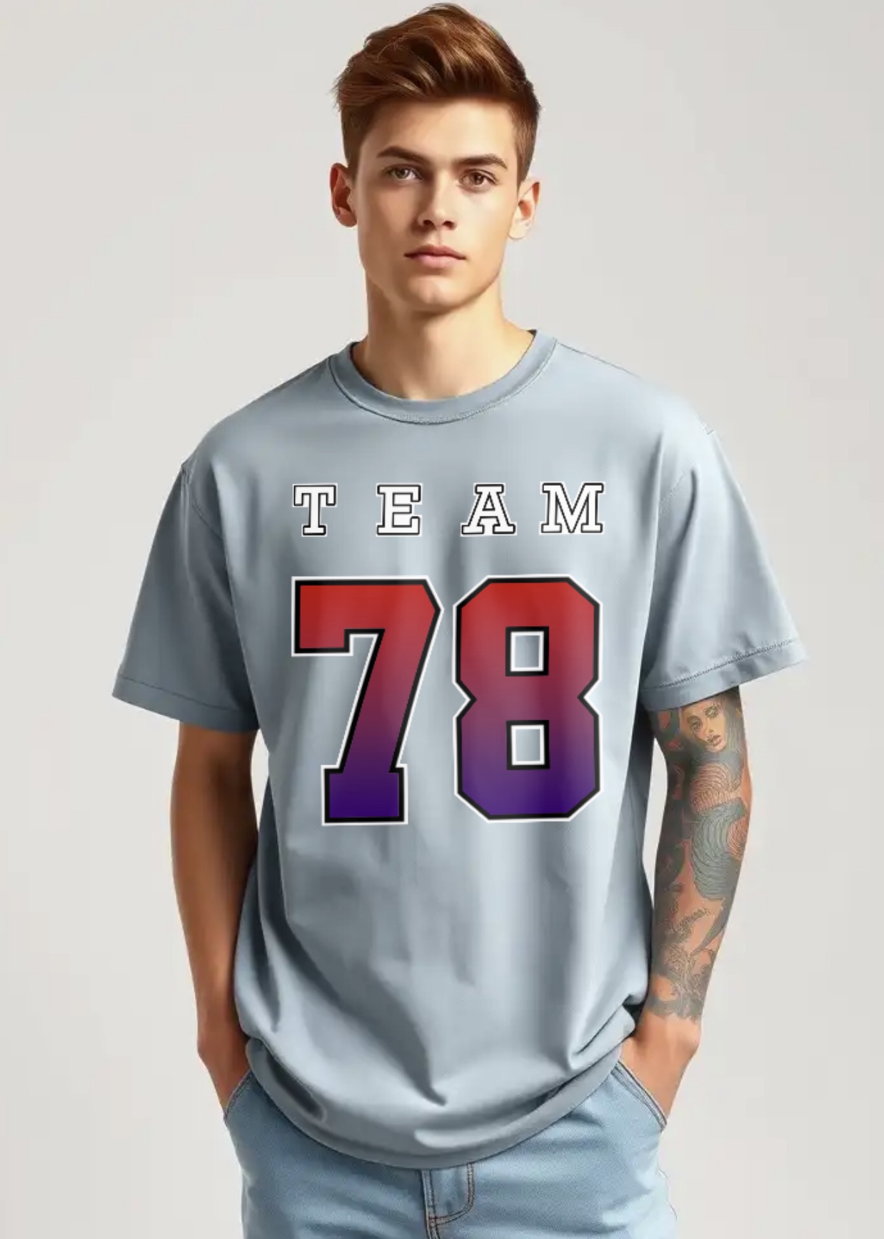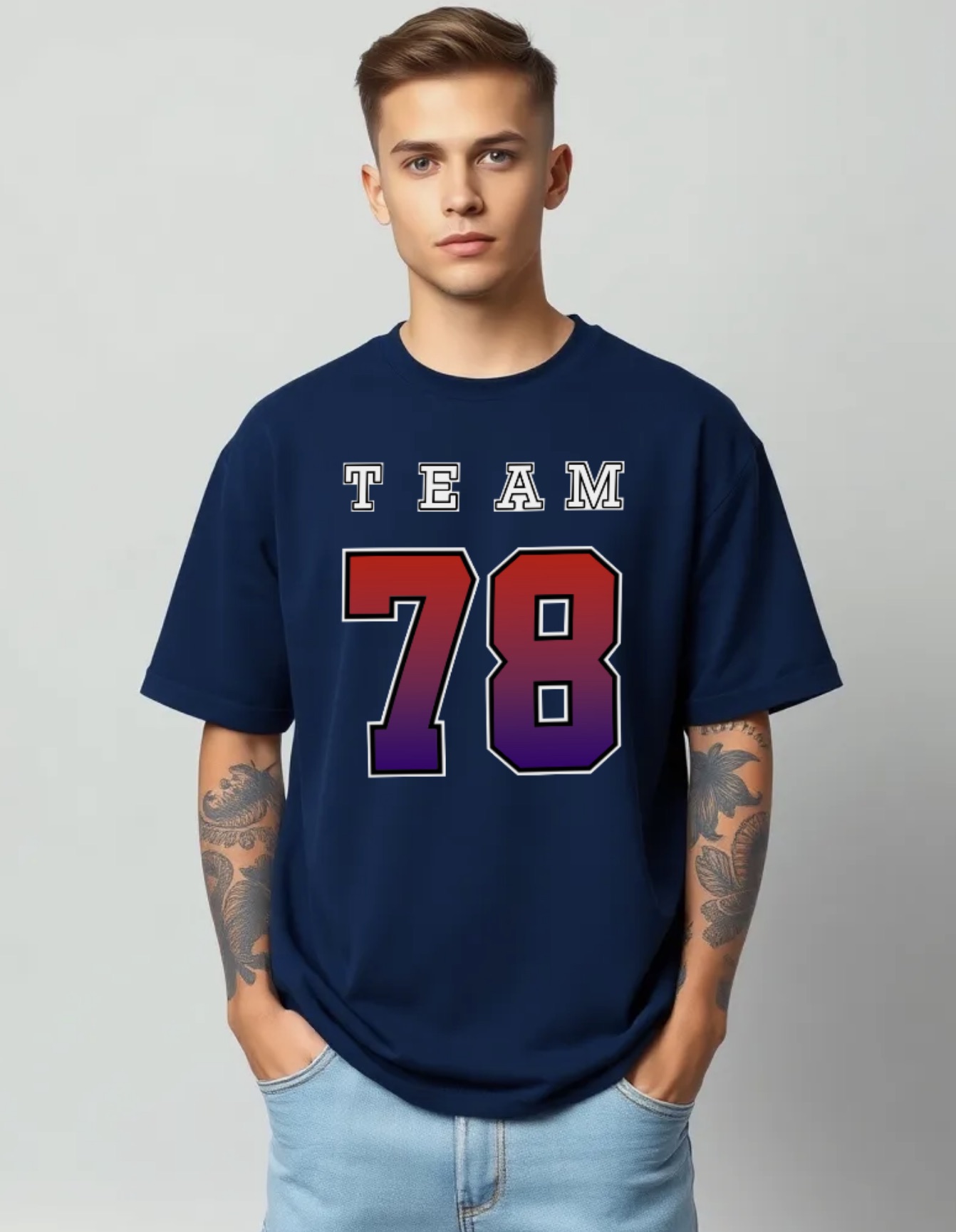 Team 78 – Super Premium 240 GSM French Terry Fabric Men’s Cotton Oversize T-Shirt – Printed, Double Bio-wash T-shirt.